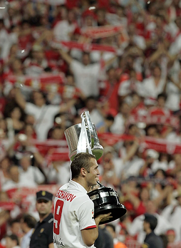 В декабре 2006 года Кержаков перешел в «Севилью». Это был первый трансфер из «Зенита» в загранку, когда игрок однозначно ушел на повышение и карьера его в итоге, мягко говоря, сложилась. На сайте «Севильи» в архивах до сих пор лежит фотография с подписания контракта: испанский президент Дель Нидо, который в будущем сядет за махинации со строительными контрактами, мой старший брат (на тот момент – юрист клуба), и не очень понимающий, где он оказался, Кержаков. Да, у меня первого в Петербурге оказалась футболка с андалусийской девяткой на спине.