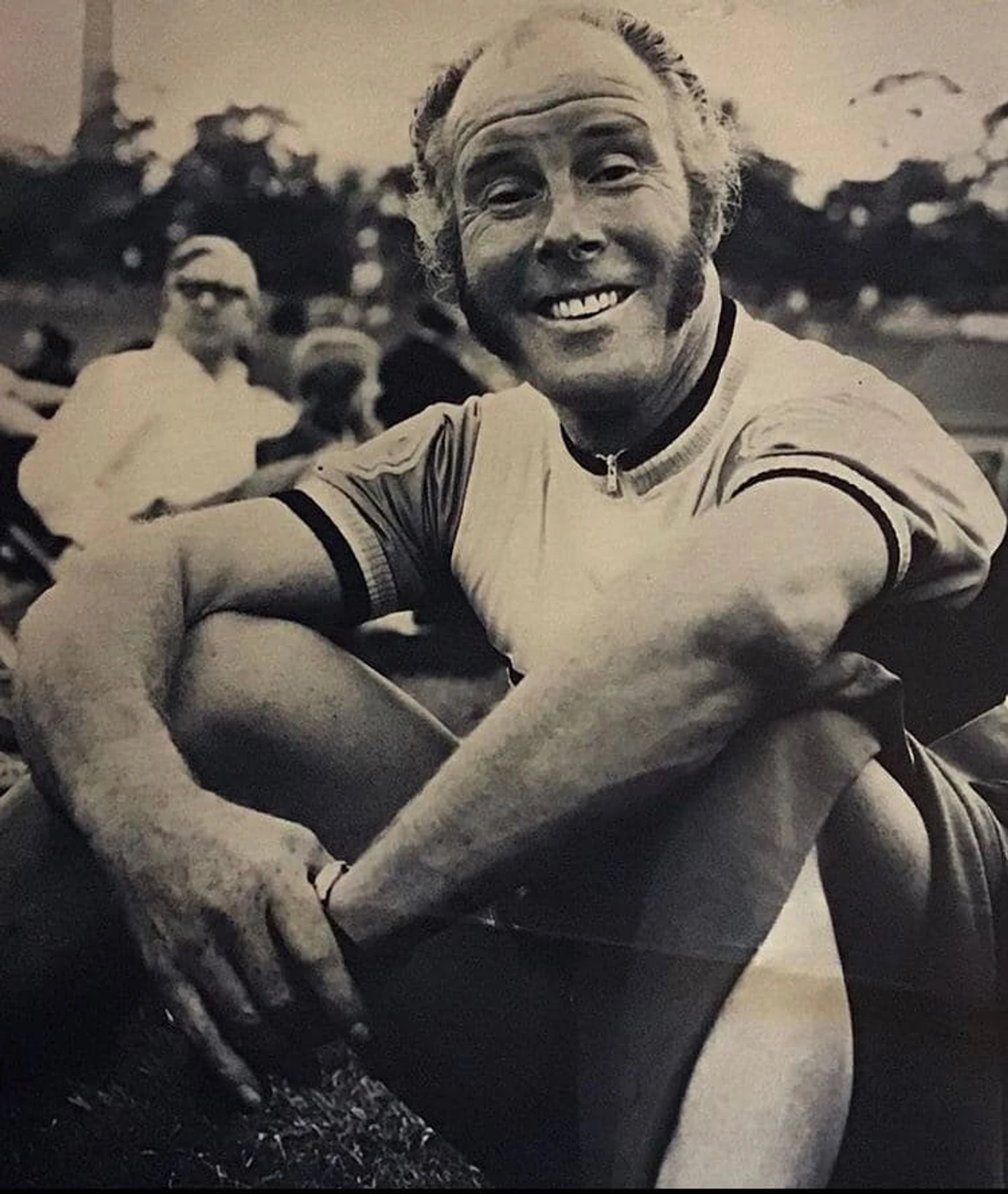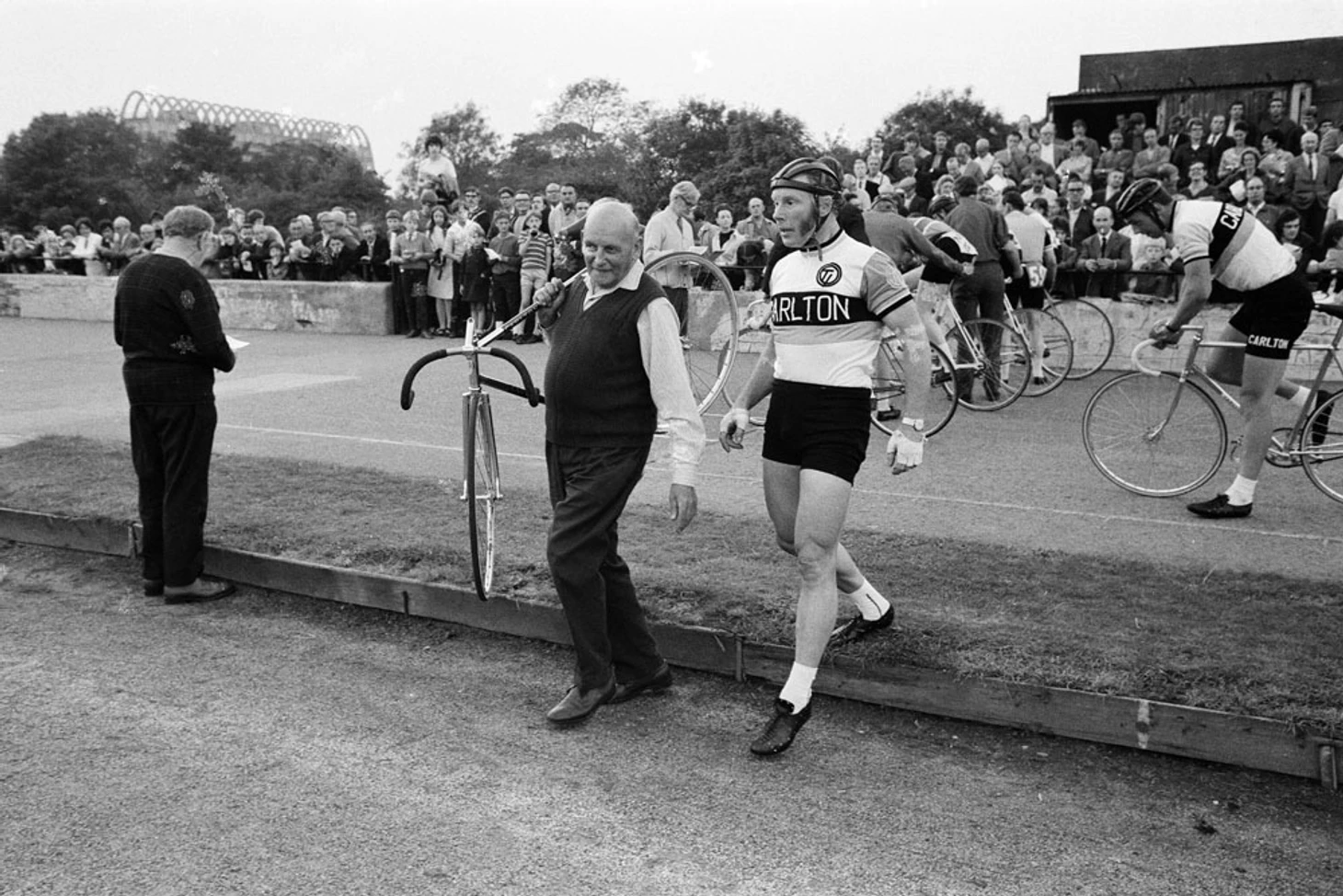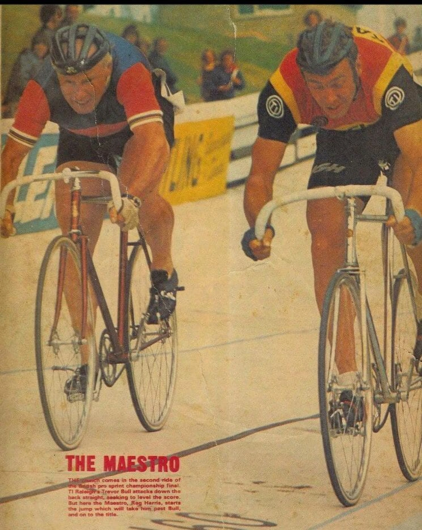Это англичанин Рег Харрис (Reg Harris), неоднократный в прошлом чемпион мира, уважаемый человек. На дворе 1971 год, Харрису 54 и спустя четырнадцать лет после выхода на пенсию он решил побороться за национальный титул чемпиона в спринте. Это как если бы Президент федерации велоспорта России Вячеслав Екимов решил бы вернуться на трек и попробовать погонять в чемпионате страны.