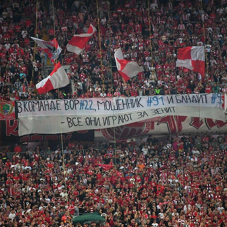 Второй был продемонстрирован совсем недавно – в прошлом году на игре с Зенитом. Бандит #9 – это именно про Кокорина. Вор #22 – Дзюба (намёк на полумифическую историю с украденными деньгами у Быстрова в раздевалке), мошенник #91 – Сутормин (намёк на мутный трансфер из «Оренбурга» в «Зенит» транзитом через «Рубин»).