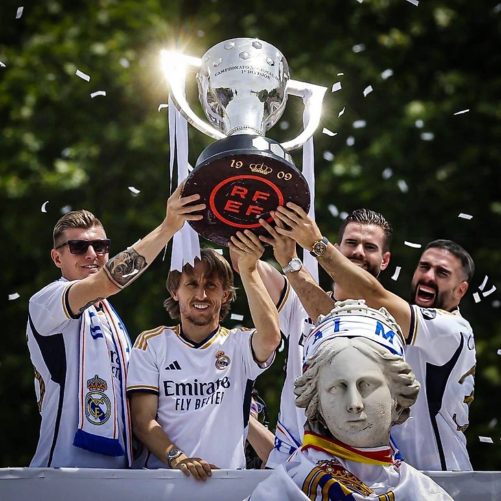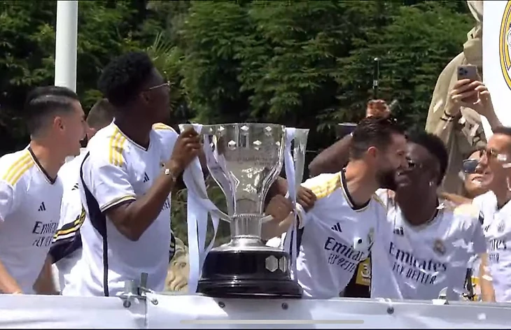 После того, как Барселона проиграла Жироне 4:2 в матче 34-го тура Ла Лиги Реал Мадрид стал чемпионом Испании 23/24, выиграв свой 36-й чемпионат. Из-за предстоящего матча Лиги Чемпионов с Баварией игроки не могли сразу отпраздновать победу, так что традиционное шествие по площади Сибелес отложили до сегодняшнего дня. В этом материале рассказываю о самом интересном на грандиозном торжестве.