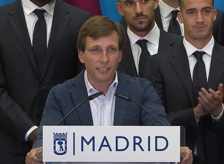 Дальше выступал мэр Мадрида Хосе Луис Мартинес-Альмейда (фанат Атлетико). Вот его высказывания: