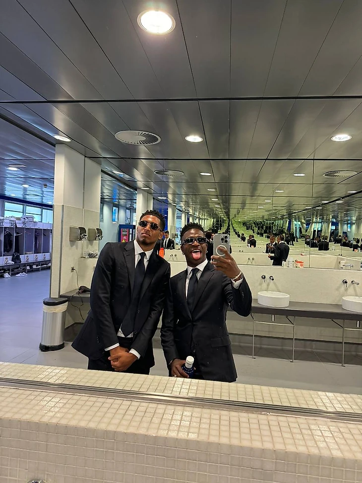 Игроки активно взаимодействовали с камерой. Беллингем достаточно официально назвал Винисиуса лучшим игроком мира, а бразилец просто сказал, что находится здесь со своим другом Беллиголом.