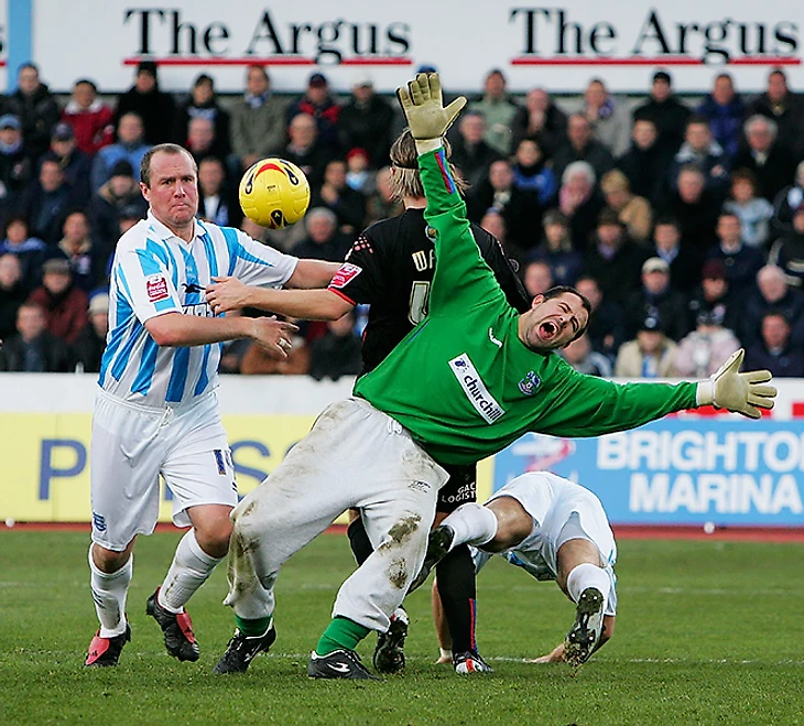 За 6 лет (и 5 клубов: «Кристал Пэлас», «Вест Хэм», «Астон Вилла», «Бернли» и «Фулхэм») Англия лишь два раза видела Кирая в шортах. Городская легенда гласила, будто вообще один, но это неправда. В сентябре 2004-го в дебютном матче в АПЛ венгр пропустил вот такой мяч от Ли Хендри. Посмотрите, во что одет Габор. Но это важно лишь для истории, там бы не помогли ни одни штаны в мире.