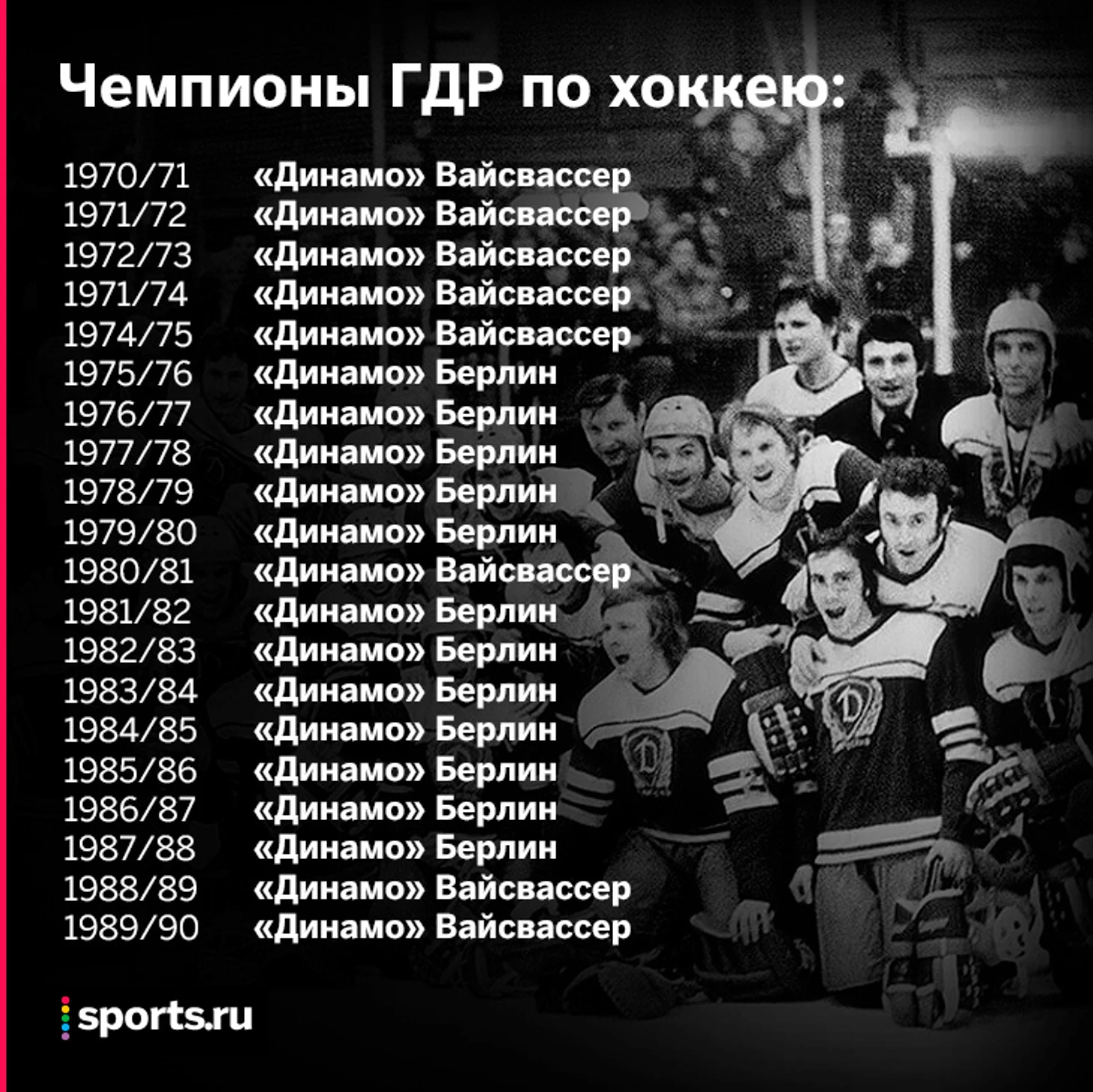Два хоккейных «Динамо» – одно из Берлина, другое из Вайсвассера – застряли в собственном дне сурка еще безнадежнее, аж на два десятилетия. Все это время в главном хоккейном чемпионате Восточной Германии играли лишь две эти команды. И никого больше. 20 бесконечных лет, десятки матчей с надоевшим соперником, на затертых до зубной боли площадках. Добро пожаловать в самую маленькую хоккейную лигу в мире.