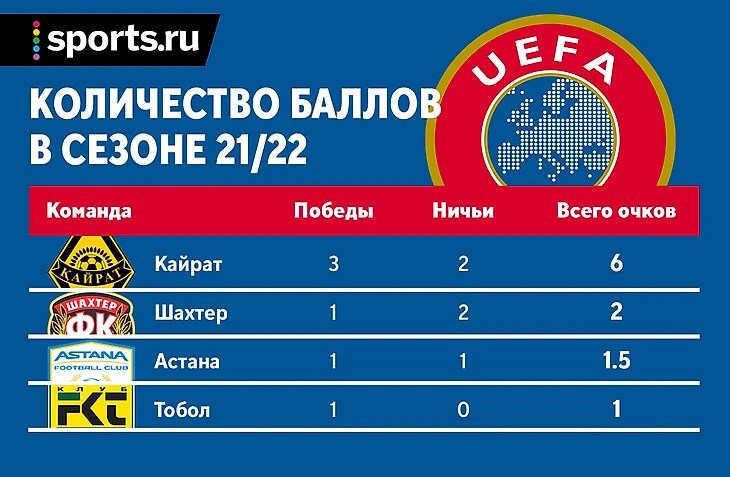 «Кайрат» – лидер по набранным очкам в еврокубках: результаты матчей с «Маккаби», «Алашкертом» ,«Фолой Эш», «Црвеной Звездой» и «Омонией» принесли 6 очков. У команды еще есть шанс пополнить общую копилку: впереди алматинцев ждет матч с киприотами.