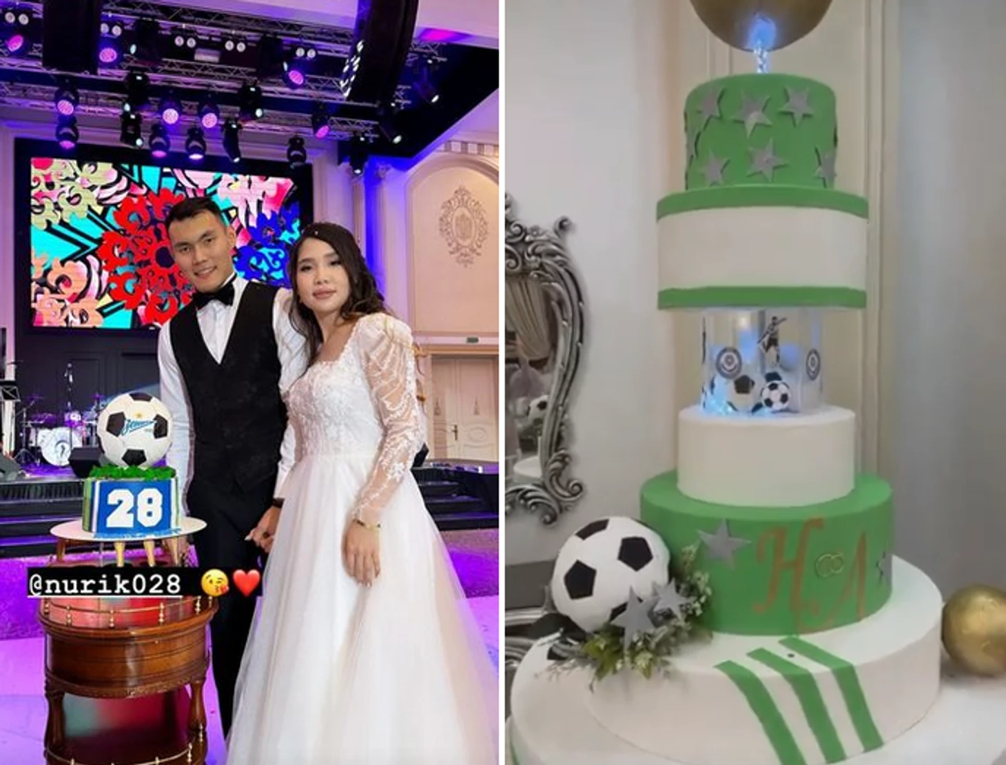 На мероприятии было много ассоциаций с футболом: у входа гостей встречал футбольный мяч с именами молодоженов, а свадебные торты были оформлены логотипами «Зенита» и Федерации футбола Казахстана.