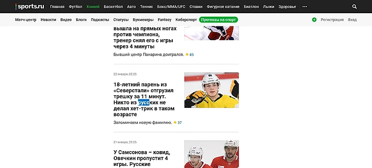 Хоккейный раздел и слово «русский». У редактора раздела «пунктик»?