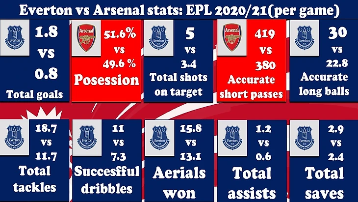 Статистика этого сезона. Точные короткие пасы и процент владения за Арсеналом. Все остальное за Эвертоном.