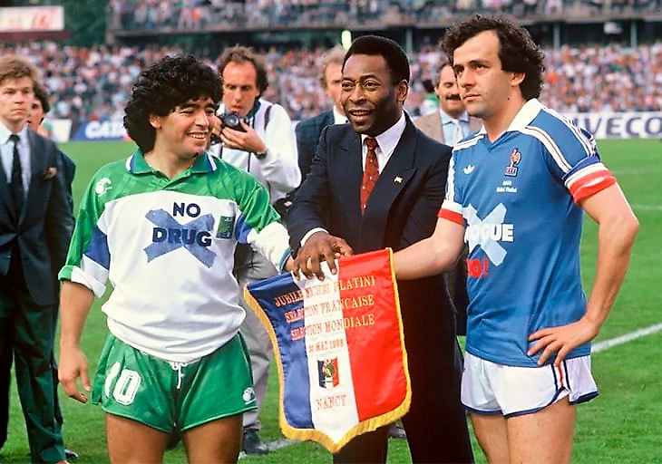 Матч закончился со счетом 2:2 – Марадона забил в первом тайме, во втором Платини ответил двумя голевыми пасами, а в концовке счет сравнял легендарный Энцо Франческоли (его игра вдохновила Зидана, который назвал в честь кумира одного из сыновей).