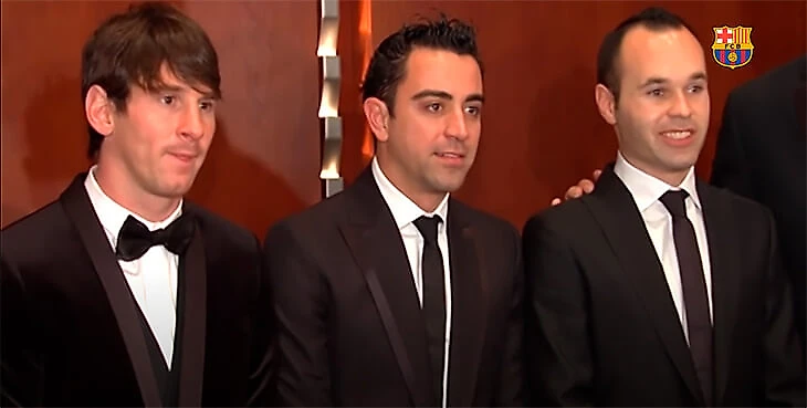 Милое ретро от «Барсы» о триумфе Ла Масси в 2010-м: у Месси – второй «Золотой мяч», в тройке – воспитанники Иньеста и Хави