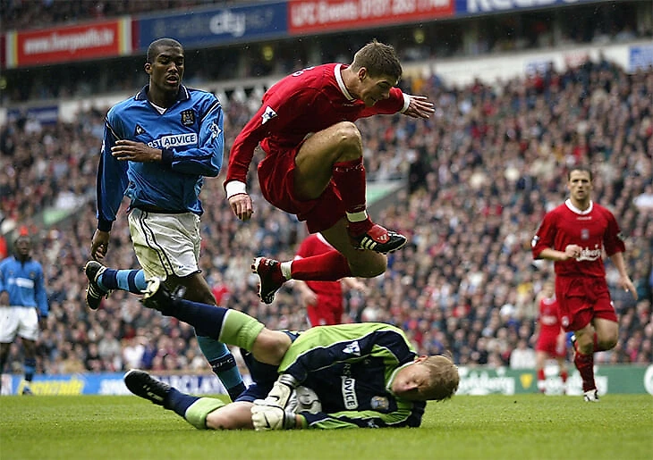 Одна легенда парит над другой: Джеррард перепрыгивает Шмейхеля.