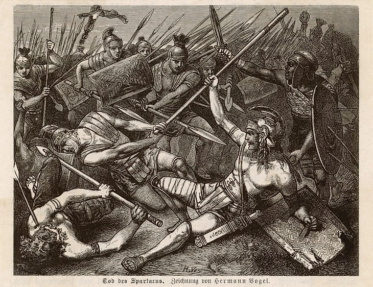 К тому же, Спартак все-таки поднял восстание и сбросил с себя рабские оковы, хоть и вместо борьбы за свободу предпочитал вместе с шайкой других таких же беглых преступников просто грабить ни в чём не повинных крестьян. К сожалению, как и в тот раз, когда Спартак сдался в рабство, в своём последнем сражении победить ему не удалось. Уверен, Спартак бы воспользовался мудрой тактикой панического бегства, если бы не получил ранение в ногу, после чего и был трагически зарезан как несчастная свинья на скотобойне.