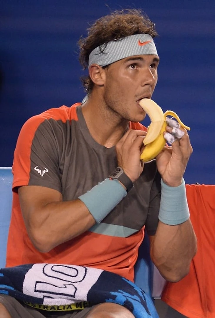 Игроки постоянно налегают на бананы, потому что в них много углеводов (фруктозы, глюкозы и сахарозы, которые организм перерабатывает в энергию) и калия (который нужен, чтобы избегать судорог и защищать сердце). А еще в них содержится гамма-аминомасляная кислота – тормозящий нейромедиатор, который помогает успокаиваться.