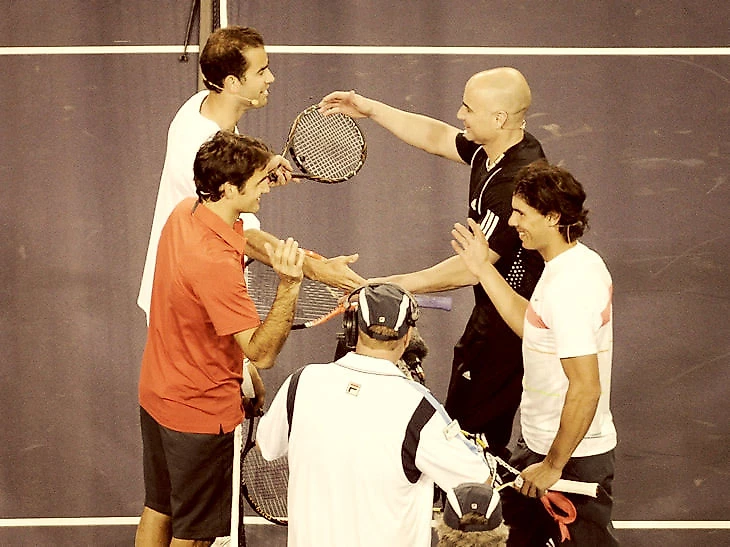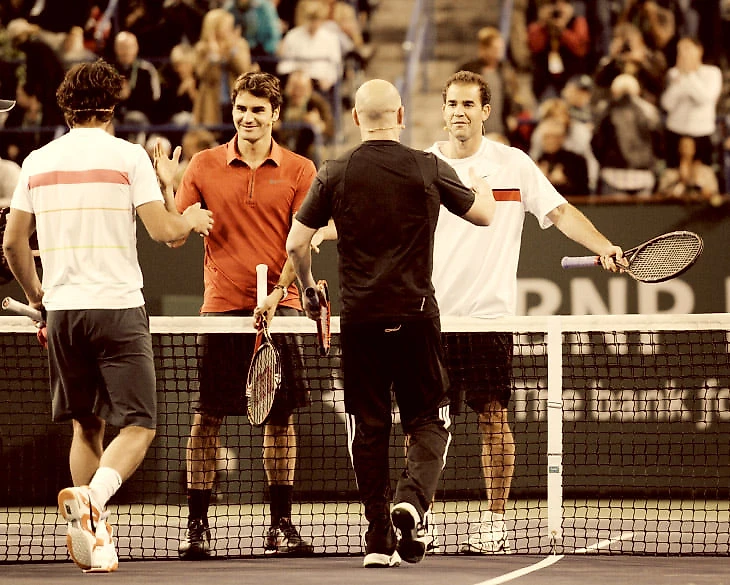 9 лет назад они впервые после выхода книги Агасси встретились на корте. Это был благотворительный матч в пользу Гаити, в начале года пострадавшего от страшного землетрясения. На площадку вышли два поколения великих соперников: Сампрас играл в паре с Роджером Федерером, а Андре выступал с Рафой Надалем.