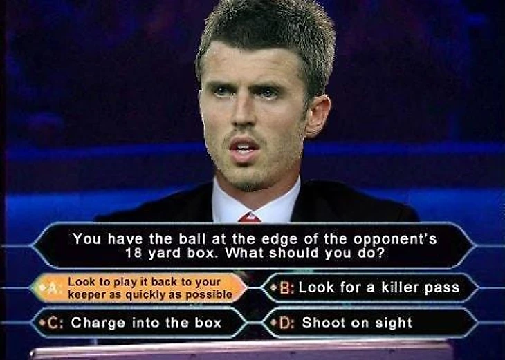 1. Он осторожен.Чересчур осторожен. Слишком осторожен. Посмотрите любую игру с ним. Сфокусируйтесь на Каррике. Будьте Карриком. Если есть возможность отдать 100% точную передачу, он сразу же ее сделает: на расстояние 2–3 метров, поперек или назад, ближнему или вратарю.