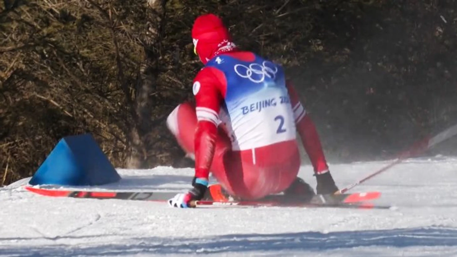 СКИАТЛОН. Александр Большунов упал на старте скиатлона на Олимпиаде в Пекине. Большунов не вписался в один из поворотов на спуске и не смог удержаться на ногах. Однако, это не помешало ему стать Олимпийским чемпионом.