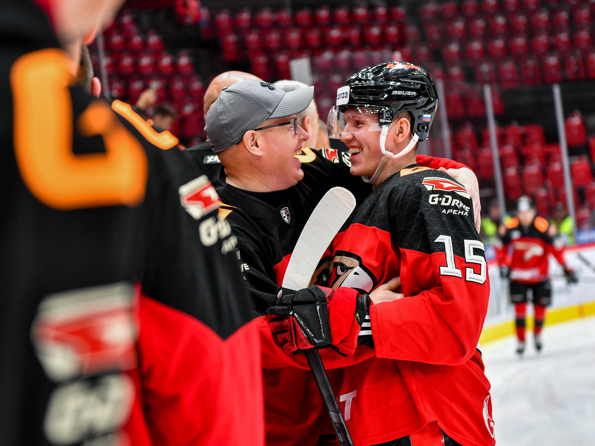 «Сумасшедший ход», - так охарактеризовал идею Михаил Кравец, и это действительно была акция из серии «это понравилось всем». Неожиданное появление пап самым прямым образом повлияло на настроение и настрой хоккеистов – чего стоит только улыбающийся на раскатке всегда серьёзный Семён Чистяков или бурно отмечающий голевой пас Богдан Киселевич! Но куда важнее, что этот ход показал человечность игроков, для которых важнее всего в жизни – видеть своих родных и чувствовать их поддержку не на расстоянии.