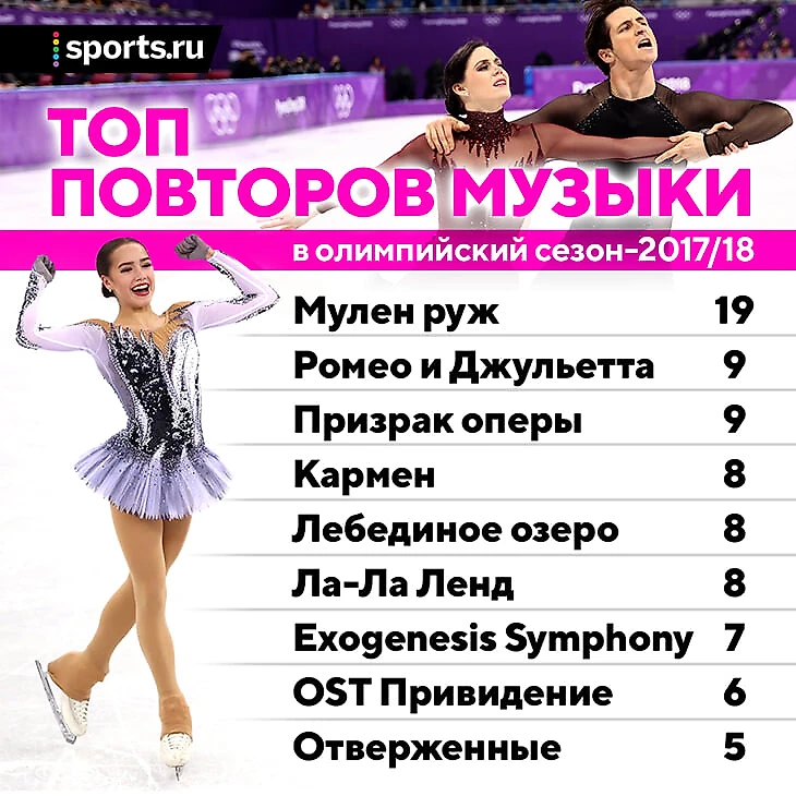 Достаточно взглянуть на картину по последнему олимпийскому сезону: 19 постановок под «Мулен Руж», 9 — «Ромео и Джульетт», по 8 — «Кармен» и «Лебединых озер» только среди взрослых.