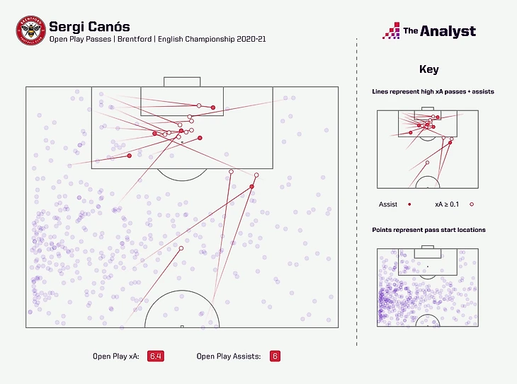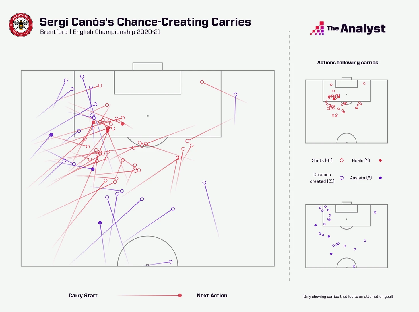 Французский инсайд Мбеумо хорошо играет с мячом в штрафной (пусть и имеет проблемы с реализацией), а также выполняет приличный объём черновой работы. Он иногда уходит в полузащиту, чтобы создать симметрию при подниманиях Джоша Дасилвы, но зачастую составляет пару нападающих с Тони (левый вингер Каньос зачастую уходит ниже). Испанец вернулся в основу после ухода Бенрахмы, выиграл конкуренцию у Форса и провёл лучший сезон в карьере. Он часто закрывал всю бровку играя латераля, выполняя эту функцию, благодаря качественному продвижению мяча.