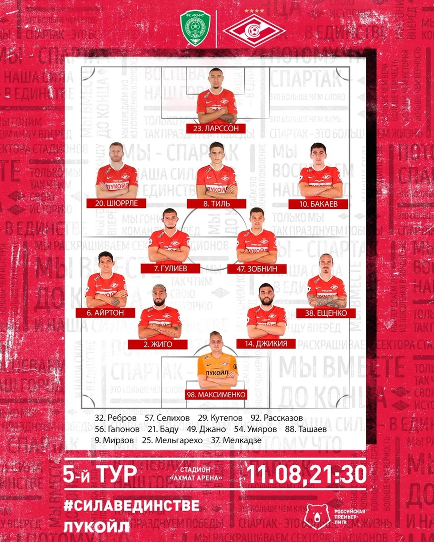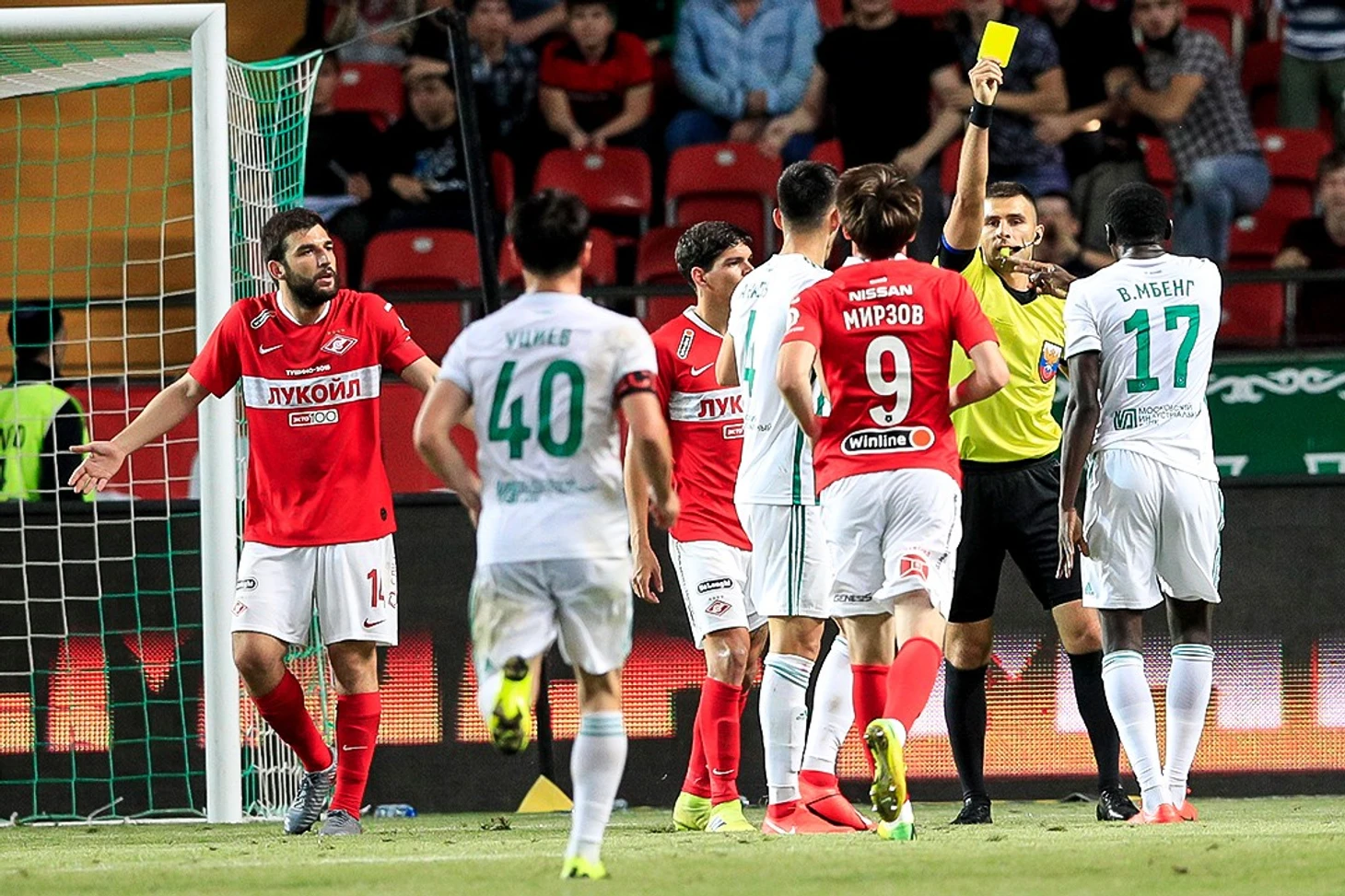 Яркое желание проявить себя в первом же матче, сыграло злую шутку с Тилем на 7'. После его нарушения (неаккуратно прошёлся по ноге Швеца и получил жёлтую) грозненцам дали пробить штрафной. Не опасный, но он перешёл на угловой. Который тоже хозяева профукали. И вот эти три минуты, да плюс те пять, которые вначале 1-го тайма красно белые осознанно (но частично) отдали грозненцам, при полном своём контроле центра поля ("Спартак", ты ли это?!), и назвали в эфире комментаторишки ахматовским "владением мячом".