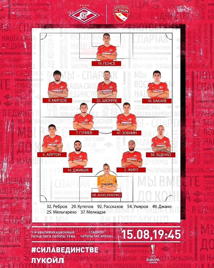 15.08.19. Прохладный восемнадцатиградусный летний вечер (будет возможность разогреться в игре), прекрасный домашний стадион "Спартака", игроки с родителями, жёнами, детишками, родственниками, пришедшими поддержать красно белую команду, более 33000 зрителей, атмосфера Лиги Европы...