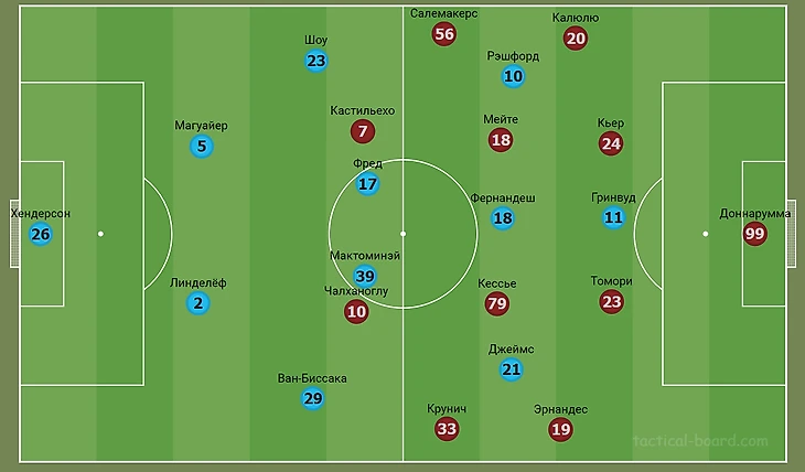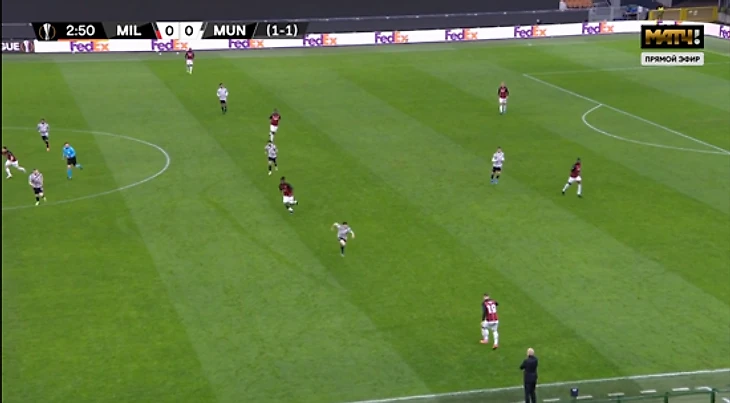 При прессинге Чалханоглу выдвигался до уровня Кастильехо, который играл нападающего в данном матче. Получалось так, что шестёрка игроков "Милана" разбирала шестёрку полевых "МЮ":