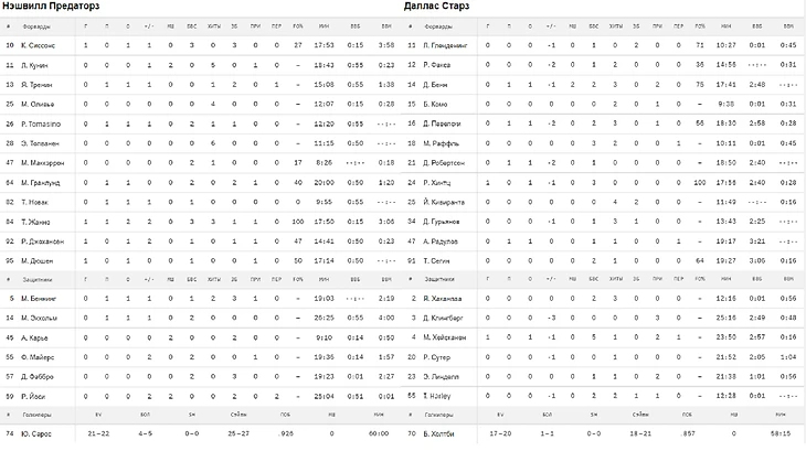 Нэшвилл - Даллас. Видео встречи 11 ноября. Итоговая статистика
