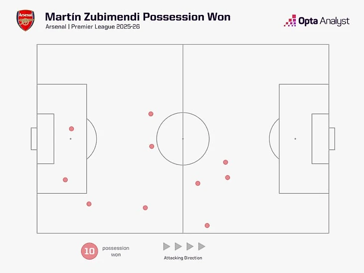 Субименди также начал свою карьеру в «Арсенале» многообещающе: в первых двух матчах Премьер-лиги он отбирал мяч чаще любого из своих партнёров (10 раз), и только Юрриен Тимбер (6) опережает его по количеству совершённых отборов (у испанца — 5).