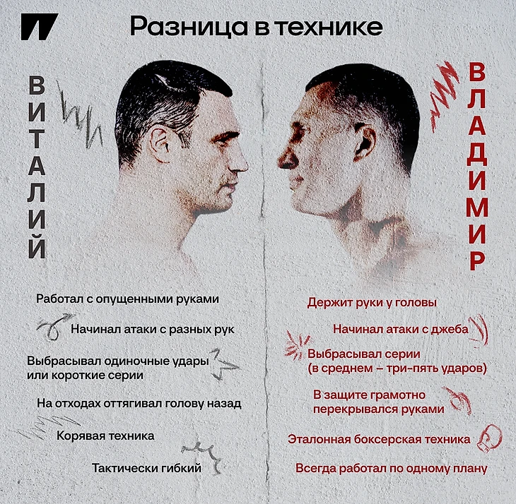 Изначально бокс Виталия лучше подходил для профессиональной карьеры и 12-раундовых боев: выбрасывал плотные одиночные удары и двойки, которые сбивали напор соперников, хорошо работал на очки, часто контролировал центр ринга и пространство. Почему Владимир так не мог?