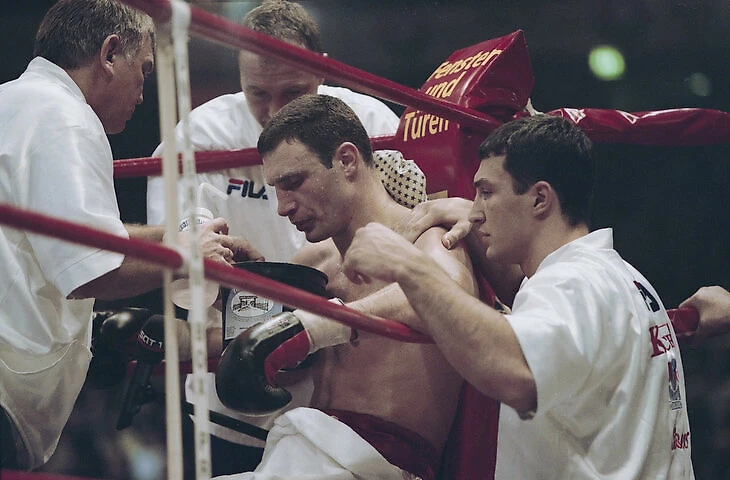 Это же погубило Владимира в 1998 году, когда Кличко-младший проиграл Россу Пьюрити техническим нокаутом в 11-м раунде. Он уверенно забрал первые девять раундов, но вымахался к 10-му: Пьюрити просто шел на Кличко с глухой защитой, а тот выбрасывал серии ударов и смещался с линии атаки. Когда Кличко устал, Пьюрити включился и добил. Важно, что за всю карьеру Пьюрити проиграл досрочно 3 раза из 17. Его уронили только во втором бою, чего не учла команда Кличко.
