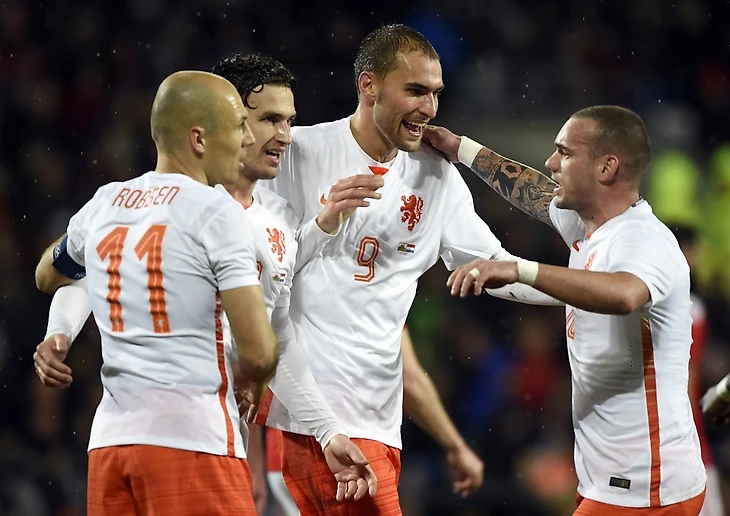 Бас Дост ("Спортинг" Лиссабон), Винсент Янссен ("Тоттенхем"), Мемфис Депай ("Лион"), Куинси Промес ("Спартак"), Арьен Роббен ("Бавария").