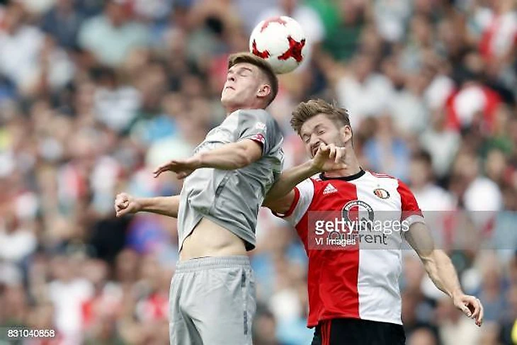Одно из успешных верховых единоборств австрийского гиганта Марко Квасины. Проигравший - Ян-Ари ван дер Хайден из "Фейеноорда".