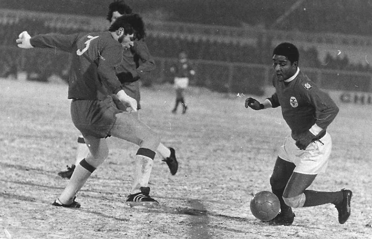 12 февраля 1969, Амстердам. Эйсебио против защитника «Аякса» Барри Хулсхофа.