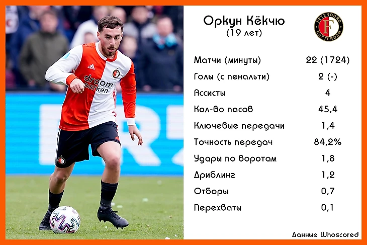 Статистика Оркана Кёкчю («Фейеноорд») в сезоне 2019/2020
