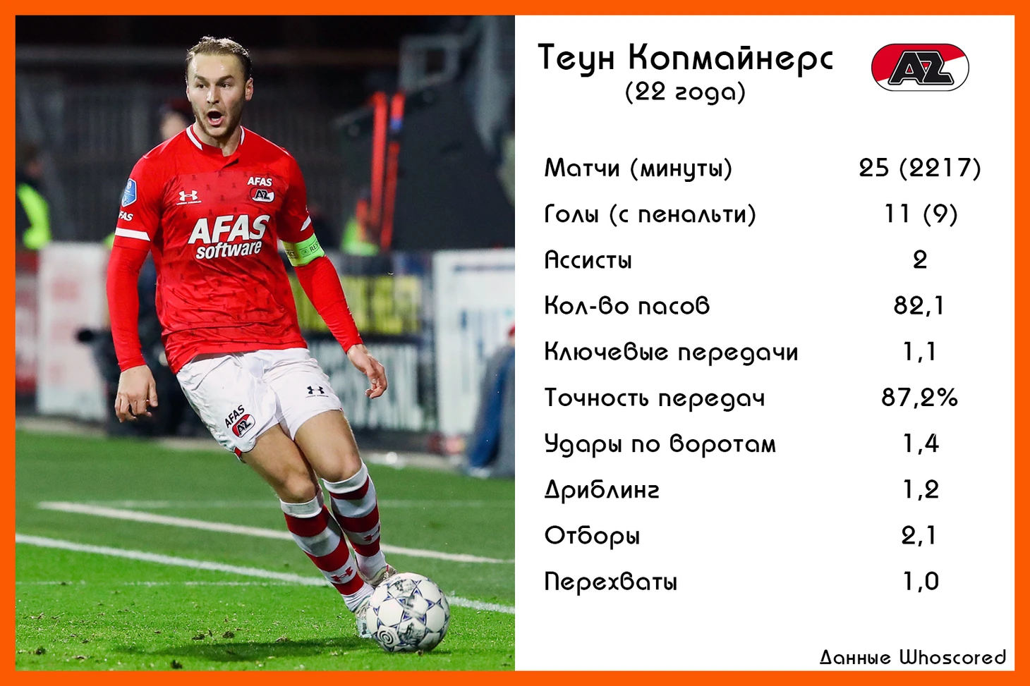 Без своей креативной «десятки» АЗ прибавил. Во многом это заслуга тренера и… Теуна Копмайнерса. Капитан «сыроваров» оказался настоящим лидером и универсалом. Выйти в центре обороны? Не проблема. Вернуться в опорную зону? Пожалуйста. По стилю – ни разу не Френки (скорее, Шёне), по универсализму и объёму работы – очень близок.