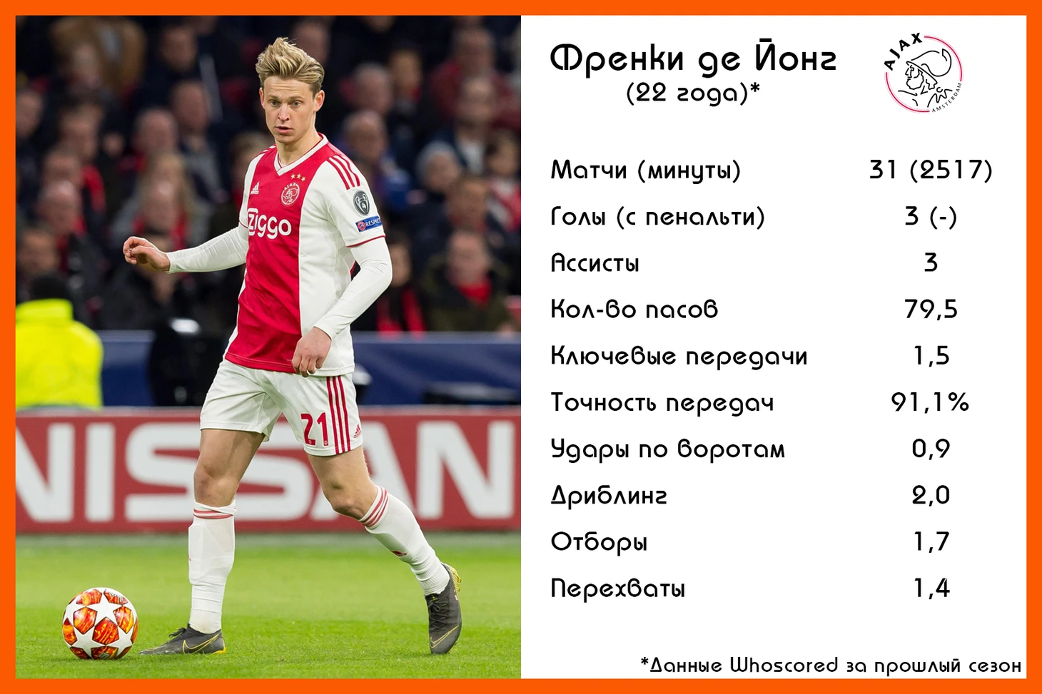 Статистика Френки де Йонга («Аякс») в сезоне 2019/2019