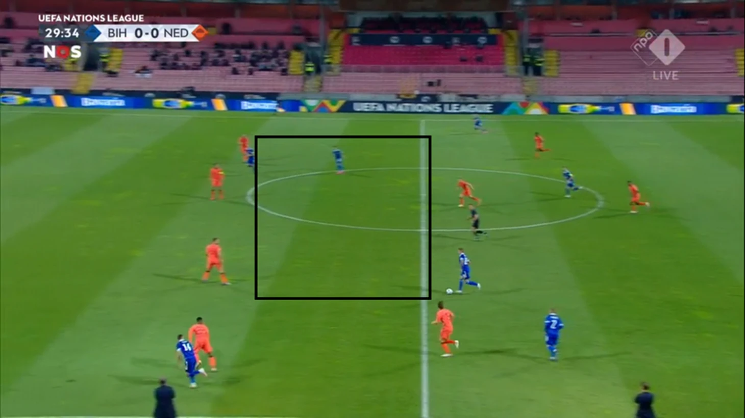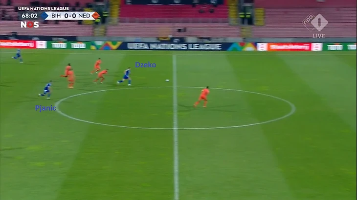 Но хуже всего было то, что непривычная игра де Рона создавала огромные пустоты перед линией защиты голландцев. Забрав мяч на своей половине, боснийцы легко и на скорости проходили центр поля, создавая потенциально опасные атаки.