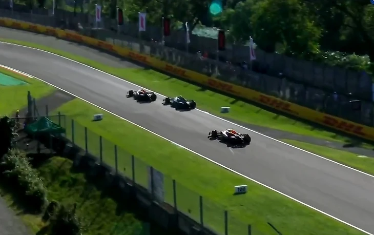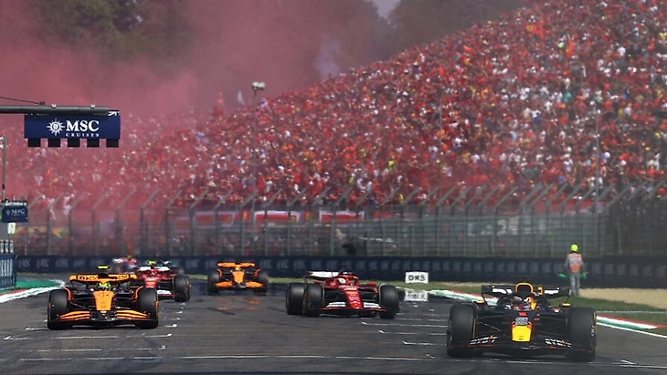 В воскресенье Имола вновь встретила гостей ярким солнем и безоблачным небом. Тифози оккупировали трибуны, полетел алый дым фаеров с холма «Риваццы». Светофор потушил огни и шоу...не началось. Недлинный и узкий рывок к первому повороту прошел под девизом «Первый поворот не для борьбы». Каждый из гонщиков в мечтах видел себя поравнявшимся с оппонентом, но к Tamburello бросал газ и сохранял позицию. До 15-го места включительно свои позиции отдали лишь оба гонщика Racing Bulls. И Цунода, и Риккиардо отвлеклись на поддерживающий рев фанов и подольше покрутили колеса в стартовых скобах. Подарком ребят из Фаэнцы воспользовались Хэмилтон, Хюлькенберг и Перес.