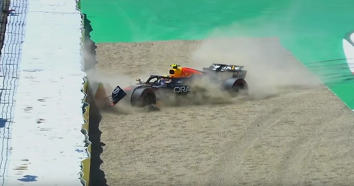 За 10 минут до клетчатого флага ожидались последние квалификационные пристрелки. Машины переобулись в красное, плотная вереница покинула боксы и готовилась приоткрыть карты конкурентам, но все планы испортил Перес. Серхио не совладал с «быком» в Variante Alta, покрутил руль и уперся носом в стену. Из узкой гравийной полоски безопасно устранить помеху можно было лишь с помощью красных флагов, которые и вывесила дирекция этапа. Честь и хвала местной службе клининга - меньше чем за 3 минуты «Ред Булл» был извлечен из барьера и доставлен за пределы трассы, что позволило возобновить тренировку за 2 минуты до конца.