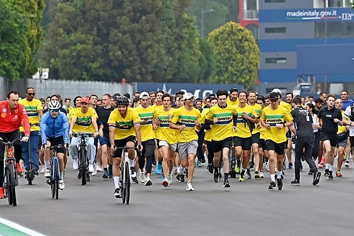 Возвращение «Формулы-1» в Европу получилось ярким и эмоциональным. Перед уик-эндом экс-чемпион мира Себастьян Феттель организовал забег памяти, посвященный 30-летию с момента смерти в Имоле Роланда Ратценбергера и Айртона Сенны. В личной коллекции Феттеля находится последняя победная машина Сенны, «Макларен» MP4/8, так что интерес немца к созданию такой акции неудивителен. Не все участники преодолели дистанцию на своих двоих - пилоты «Феррари» и Вальтери Боттас использовали велосипед, а Льюис Хэмилтон поддерживал процессию на электросамокате. Ну а что, впереди 3 дня гонок, силы еще пригодятся. После финиша группа проследовала памятнику Сенне и возложила цветы в память о трагических событиях 1994-го года. Небо Имолы не осталось в стороне - после забега тучи облили город плотными струями дождя, что никак не омрачило настроение участников события.