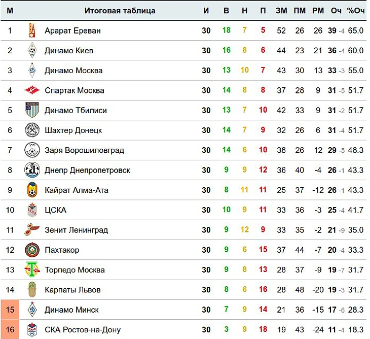 Больше всех мячей за «Арарат» в том сезоне забил Аркадий Андреасян – 13. Эдуард Маркаров отличился 10 мячами.