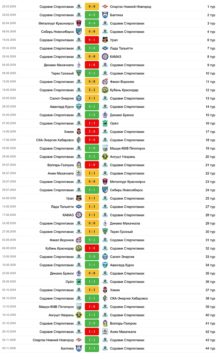 Ну а в 2006 году «Содовик» сходу занял высокое 6 место в Первом дивизионе.