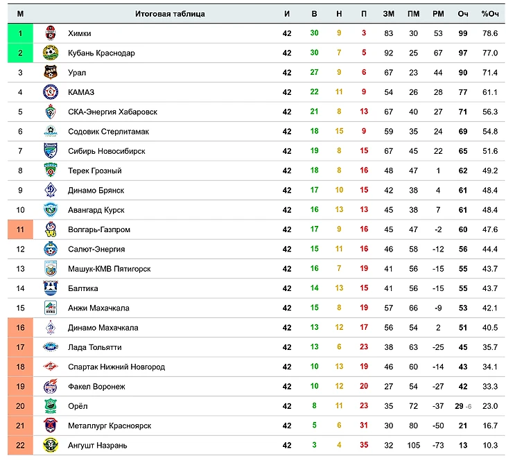 Вообще сезон получился довольно трэшовый, клуб то лидировал в таблице, то опускался на 14 место. Но в 38 туре команда взобралась на 6 строчку таблицы и больше её не упускала.