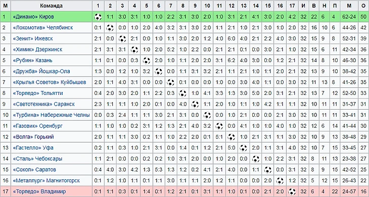 Девять сильнейших команд второй лиги: «Даугава» (Рига), «Нефтяник» (Фергана), «Котайк» (Абовян), «Кривбасс» (Кривой Рог), «Динамо» (Киров), «Актюбинец» (Актюбинск), «Ротор» (Волгоград), «Текстильщик» (Иваново) и «Динамо» (Барнаул), разбитые на три группы в двухкруговом поединке, между собой разыграли три путевки в первую лигу. В первом матче на своем поле в присутствии многочисленной аудитории динамовцы принимали команду «Актюбинск», футболисты которой приехали после поражения на своем поле от «Кривбасса», и поэтому находились в разъяренном состоянии. Матч начался стремительно, и уже к пятнадцатой минуте команды обменялись голами: на быстрый гол А.Козловских, А.Догу сильным ударом издалека удалось сравнять счет. Однако незадолго до перерыва, лучший бомбардир А.Козловских выводит свою команду вперед. Во втором тайме третий мяч проводит все тот же Козловских и закрепляет победу. Хорошее начало. В приподнятом настроении кировчане выехали в Кривой Рог, где их ждал четырехкратный чемпион Украины «Кривбасс». Опасения, что матч для кировчан будет непростым, наверняка были. Хозяева поля при поддержке двадцатипятитысячной армии болельщиков, сразу же пошли в атаку. Динамовцы выстояли и постепенно перевели игру на половину поля хозяев. Перед самым свистком арбитра, после отличной трехходовки Ю.Стариков - В.Белов - А.Козловских, мяч оказывается в сетке ворот «Кривбасса». Во втором тайме темп игры динамовцев ослаб. Чем и воспользовались хозяева, забившие еще 2 мяча. 3:1 в пользу «Кривбасса».