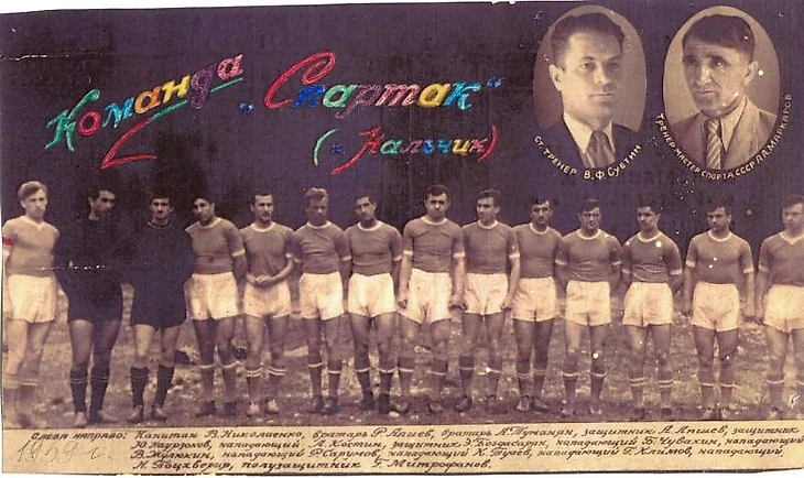 Нальчикский Спартак был основан в 1935 году. Но особых достижений команда не добивалась. Вплоть до 1959г. Именно тогда впервые футболисты Спартака приняли участие в профессиональной лиге. Под руководством В. Суетина была создана команда, основой которой стали местные молодые игроки, средний возраст которых был 21 год. По ходу сезона ряд игроков был отстранен, по причине неспортивного поведения. Данные меры привели к улучшению дисциплины и сплочению команды. В итоге Спартак стал 10-м из 14 команд.