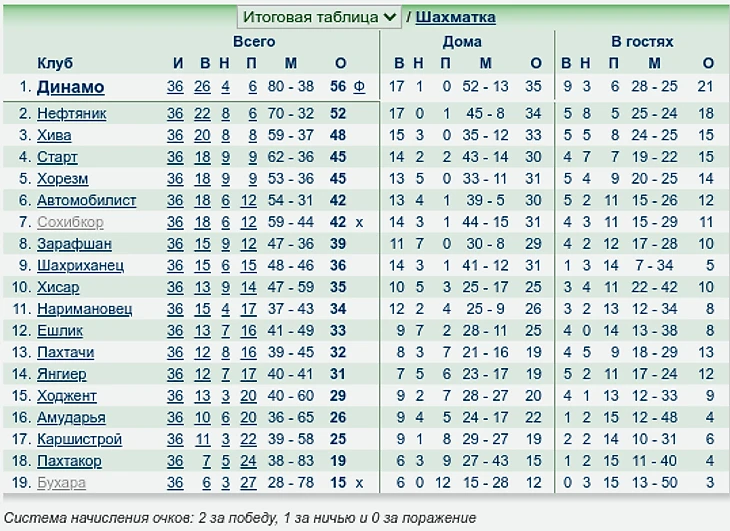 Сезон самаркандцы открыли мощно, 5:0 с «Бухарой», затем 4:0 над «Наримановцем». В следующих турах «Динамовцы» изменили свою статистику, 0:1 с «Хивой». Игры с 7 по 13 туры, уместили в себя 4 победы и две ничьи. Под окончании турнира «Динамовцы» набрали бешенный темп и оставшихся 8 турах: 7 побед и одна ничья.
