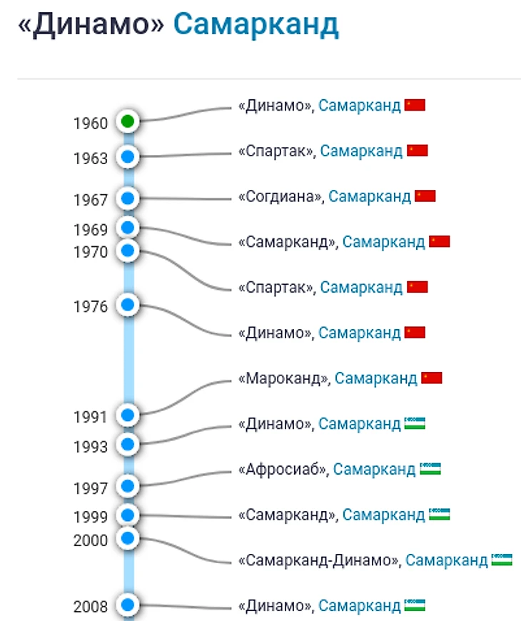Стоит отметить, что с 1963—1967 года команда носила название «Спартак», в 1967—1968 годах — «Согдиана», в 1968—1970 годах — «Самарканд», 1970—1976 годах — снова «Спартак», со 2-й половины 1976 года и до середины 1991 года имела своё первоначальное наименование — «Динамо».