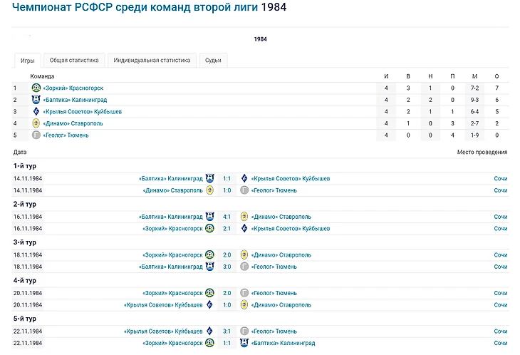 "Зоркий" обыгрывает куйбышевцев 2:1, затем по 2:0 получили ставропольцы и тюменцы. А вот с балтийцами пришлось туговато, именно в этом матче решалась судьба чемпионства, но всё таки 1:1, что принесло красногорцам почетный титул чемпиона РСФСР 1984 года.