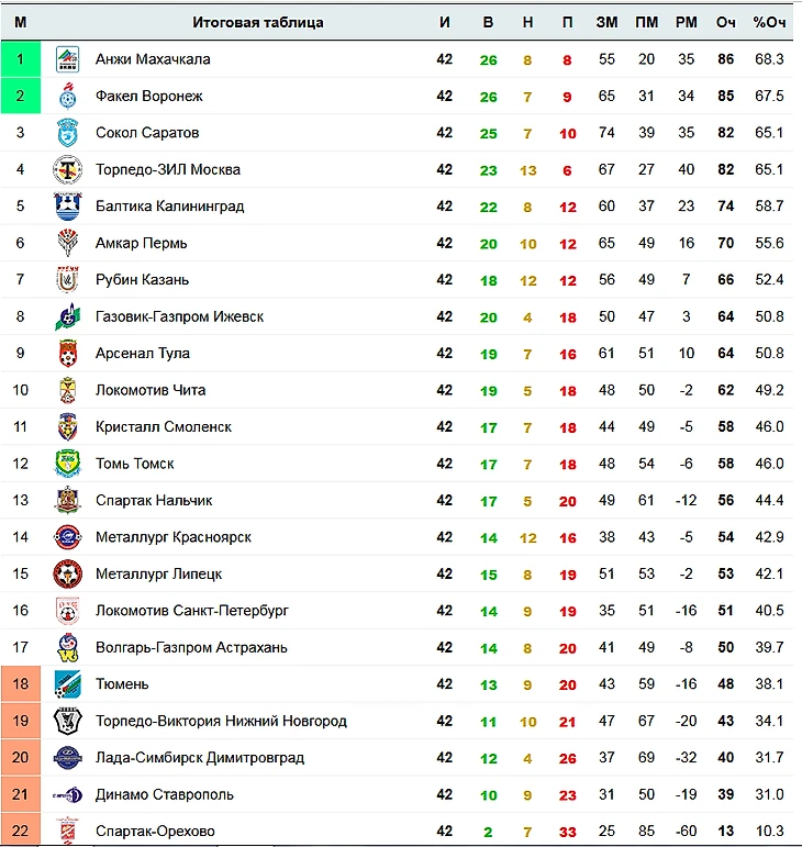 Конкуренты в лице "Факела", "Сокола" и "Торпедо-ЗИЛа" старались не отставать. Но "Анжи" провел второй круг более ровнее соперников, выдавая временами многоматчевые победные серии. Как итог махачкалинский клуб, в сорок первом туре обыграв в решающем матче саратовский «Сокол» со счетом 1:0, обеспечил себе первое место и выход в вышку.