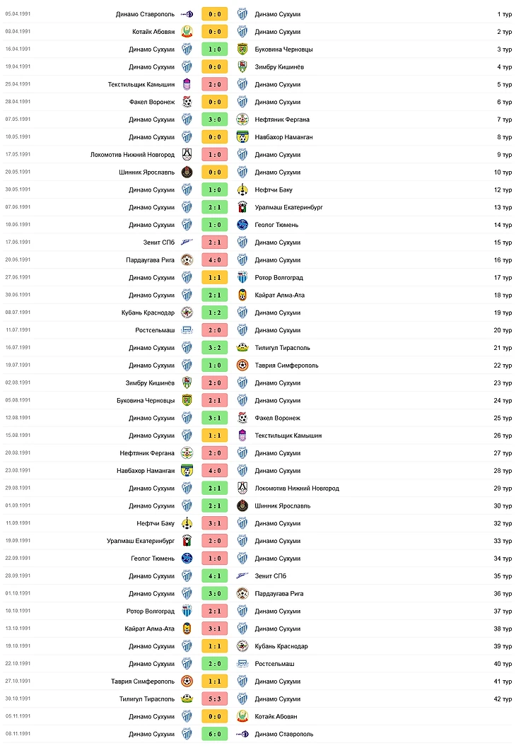 По окончании сезона 1990г. ведущие игроки сухумского «Динамо» перешли играть за различные команды Высшей лиги. А значит перед стартом нового сезона вновь встала проблема комплектования команды. На тот момент в команде остались: вратарь Сергей Смелов, защитники Саид и Родери Тарба, полузашитники Тамаз Еник, Тенгиз Логуа, Даур Ахвледиани, Джума Квараггхелия, Джемал Губаз, нападающие Георгий Чалигава и Роман Хагба.